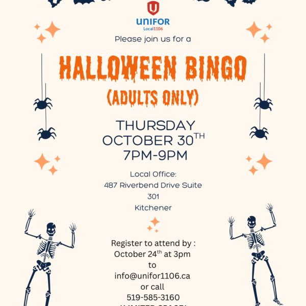 2025-10-01 Unifor Support Comments closed Halloween Bingo (Adults only) Posted in Local news, and Unifor 1106 Previous Post Pumpkin Carving Party! Next Post Member Holiday Party! Unifor Support View more posts